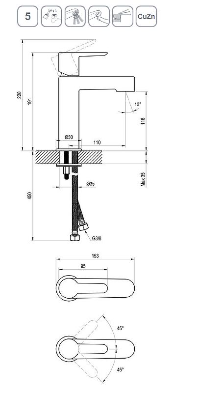 Стандарт подводки: G 3/8.