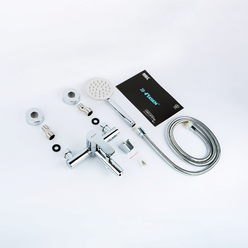 —Смеситель для ванны Fixen NORDIC однорычажный, керамический картридж, с душевым набором, хром (FX-8803)