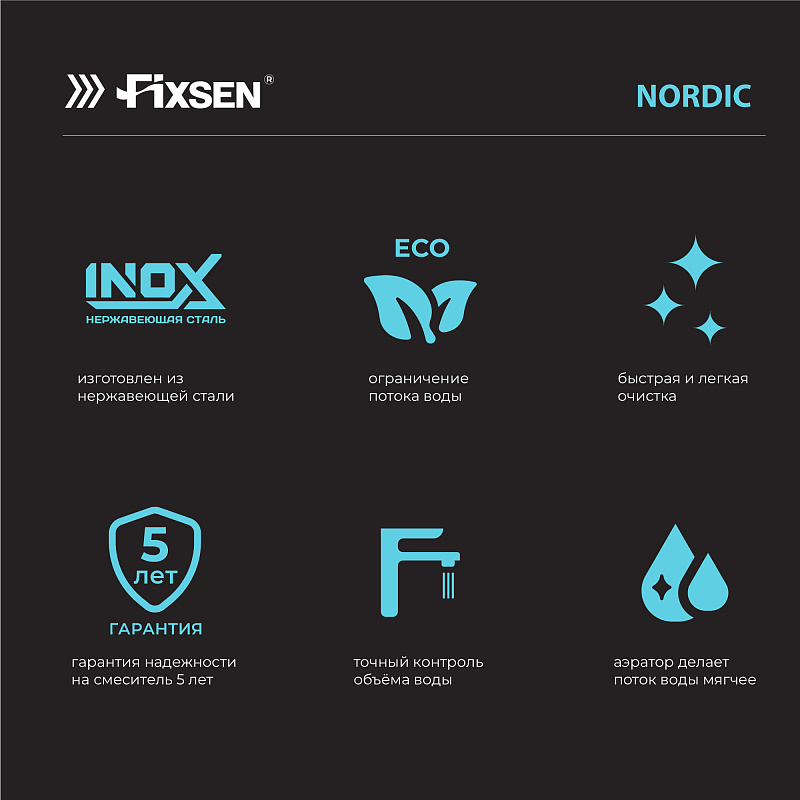 Смеситель для ванны Fixen NORDIC однорычажный, длинный излив, керамический картридж, с душевым набором, хром (FX-8801)