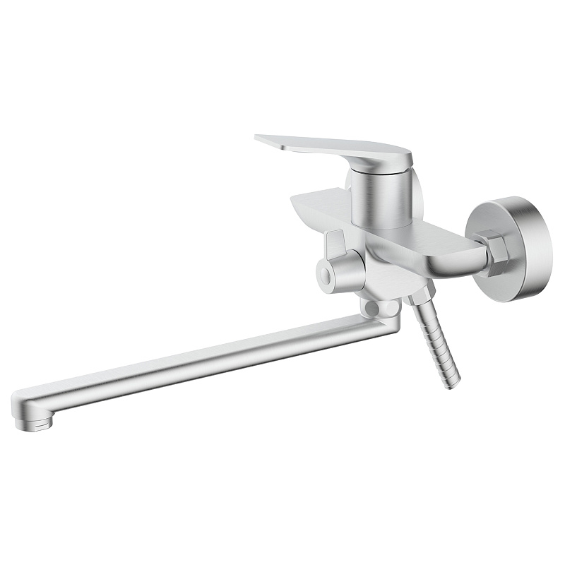 —Смеситель для ванны Azario Lursy керамический картридж, длинный излив, с ручным душем, шланг 150 см, сатин (AZ-K1749BN)