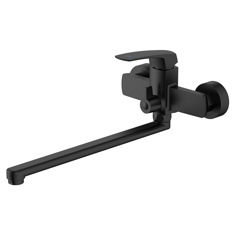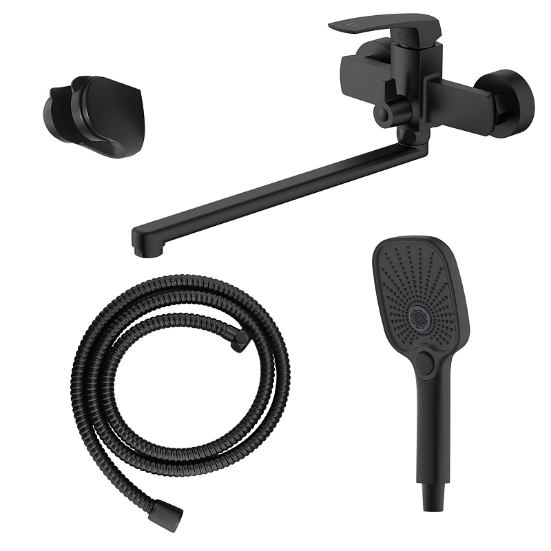 —Смеситель для ванны Azario Conda керамический картридж, длинный излив, с ручным душем, шланг 150 см, черный матовый (AZ-K1711B)