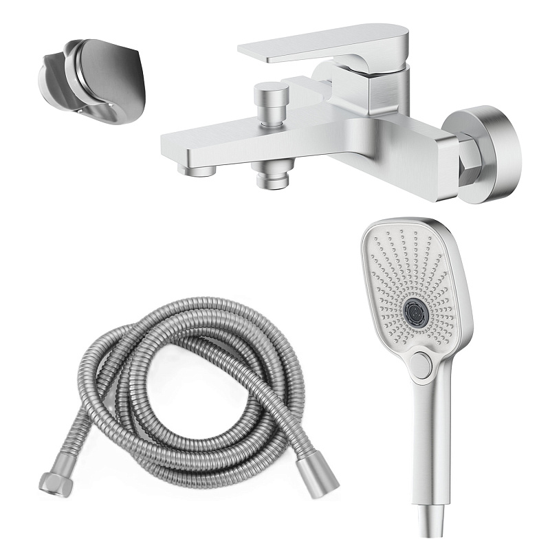 —Смеситель для ванны Azario Arida керамический картридж, с ручным душем, шланг 150 см, сатин (AZ-K3054BN)