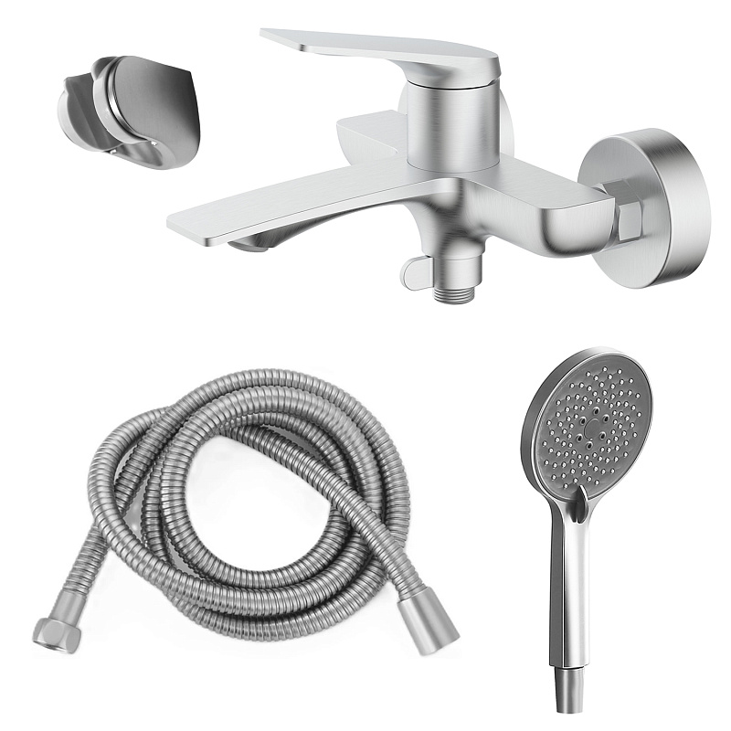 —Смеситель для ванны Azario Lursy с ручным душем, керамический картридж, шланг 150 см, сатин (AZ-K3049BN)
