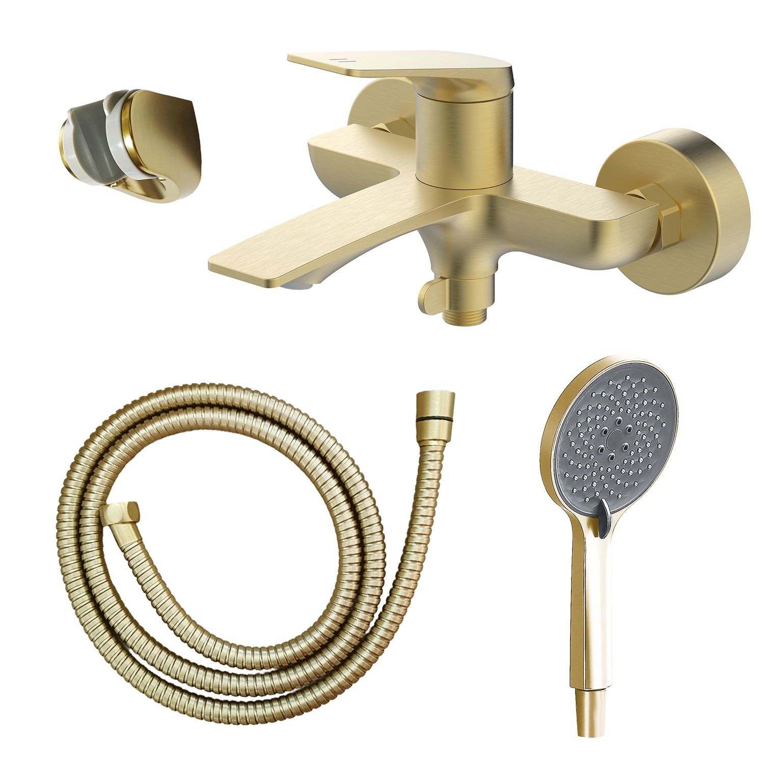 —Смеситель для ванны Azario Lursy с ручным душем, керамический картридж, шланг 150 см, золото матовое (AZ-K3049MG)