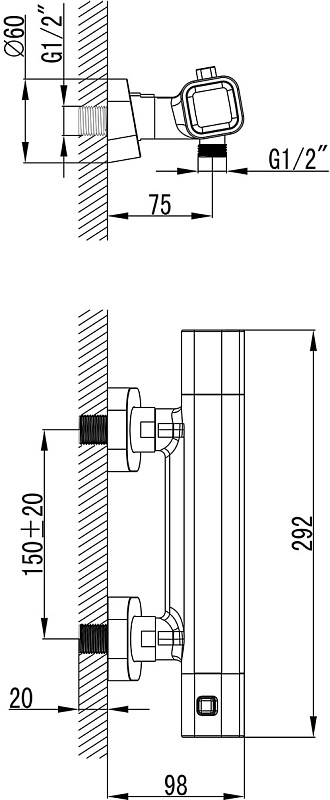 - картридж (диаметр, материал): 35 мм, керамический; термостатический для регулирования температуры воды