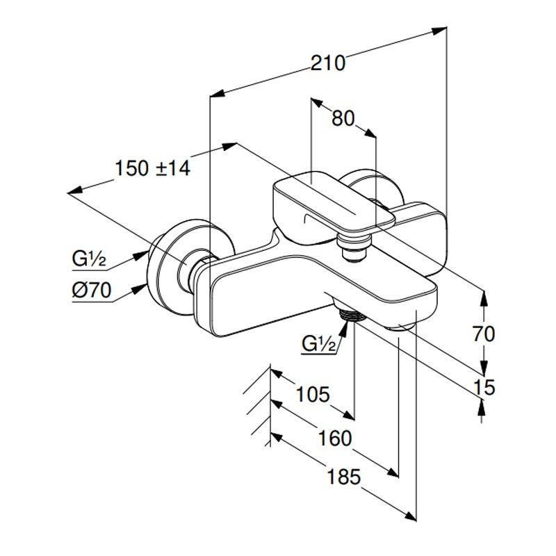 —Смеситель для ванны KLUDI RENON керамический картридж, однорычажный, хром (426910575)