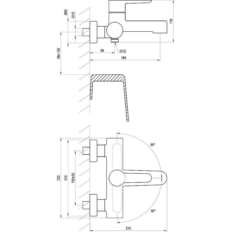 Смеситель для ванны Puri имеет специальный поворотный картридж с функцией переключения ванна/душ. У этого смесителя не регулируется поток воды, он постоянен и зависит от давления горячей и холодной воды. Рычаг регулирует только температуру воды.