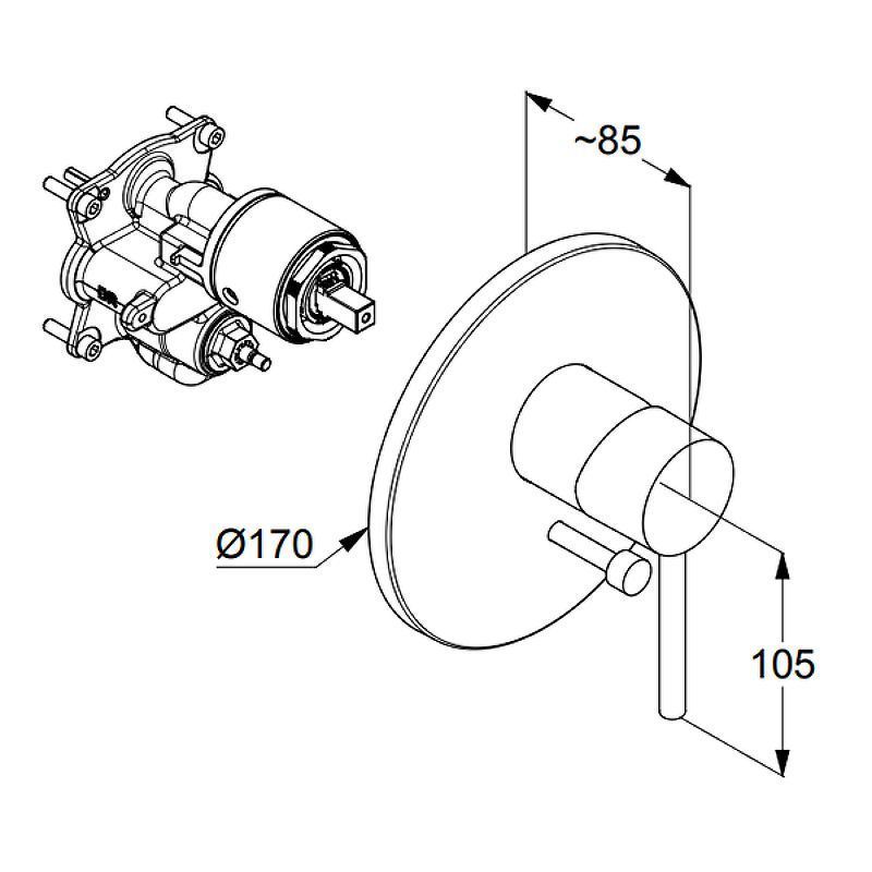 Смеситель для душа Kludi Bozz 386503976, внешняя монтажная часть - бескомпромиссно экономный, но при этом необыкновенно элегантный.