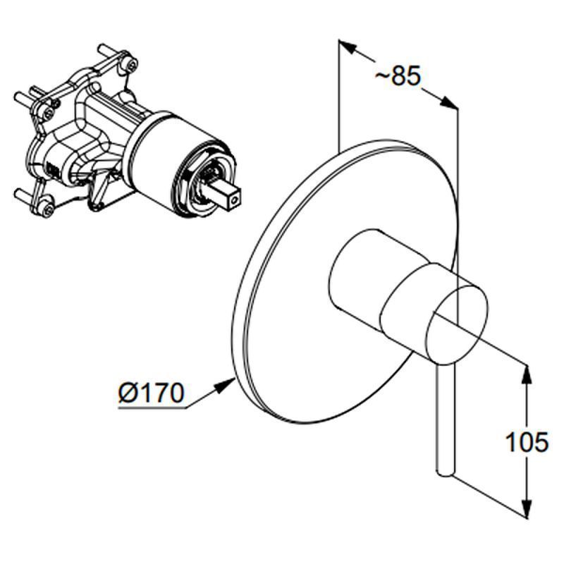Смеситель для душа Kludi Bozz 386553976, внешняя монтажная часть - бескомпромиссно экономный, но при этом необыкновенно элегантный.