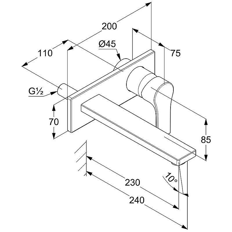 —Смеситель для раковины KLUDI ZENTA SL настенный, внешняя монтажная часть, длина излива, 230 мм, хром (482480565)