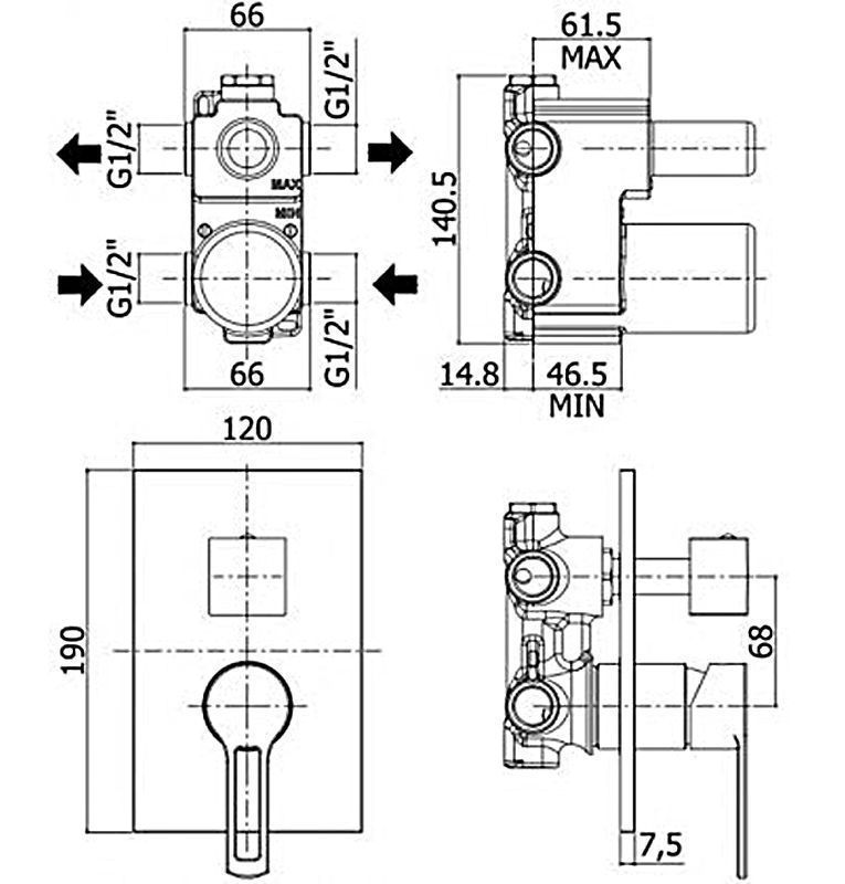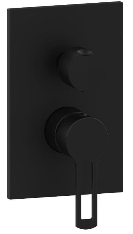 Смеситель встраиваемый для душа  на 2 выхода с накладкой нерж сталь 120х190мм.девиатор-картридж, 2 положения+1 комбо, Черный матовый