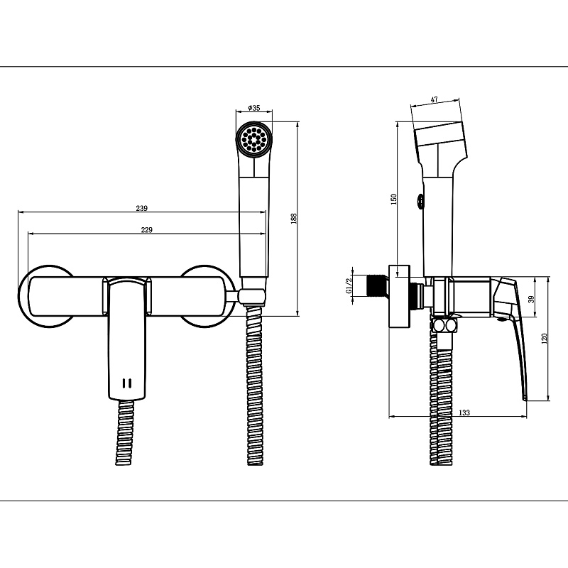 —Гигиенический душ Azario Conda со смесителем, керамический картридж, шланг 150 см, графит (AZ-K2511GR)