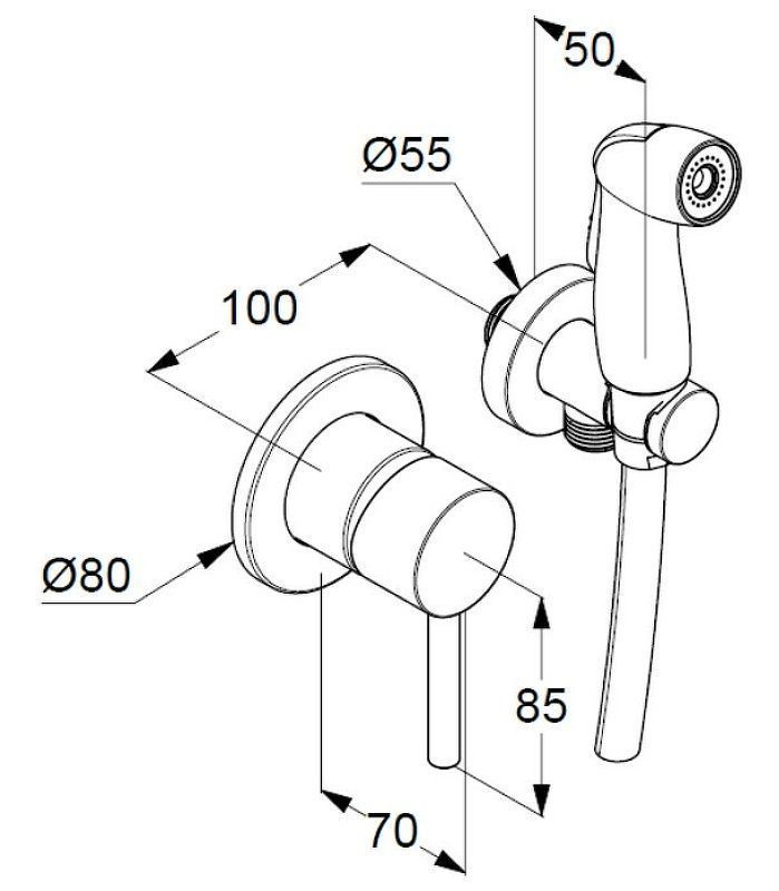 Высота лейки гигиенического душа: 9 см.