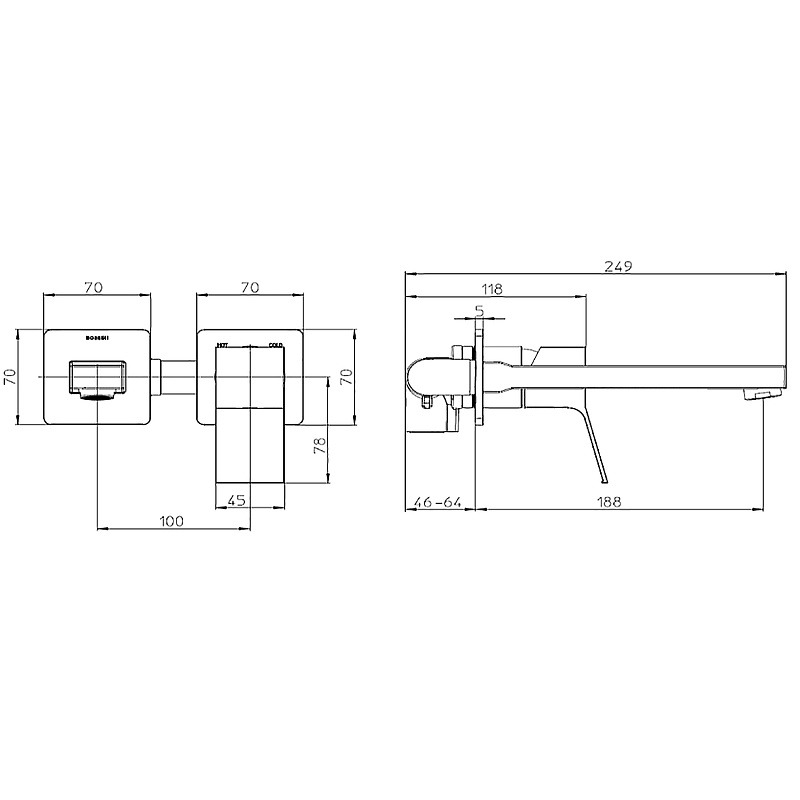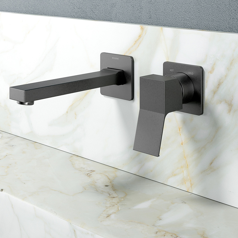—Комплект Bossini TEO Смеситель для раковины, настенный, встраиваемый, с изливом 18.5 см, хром + Встраиваемая часть однорычажного смесителя (Z00731.030+Z00801)
