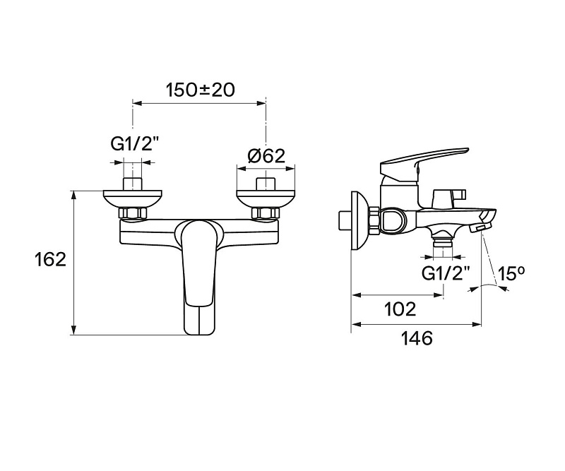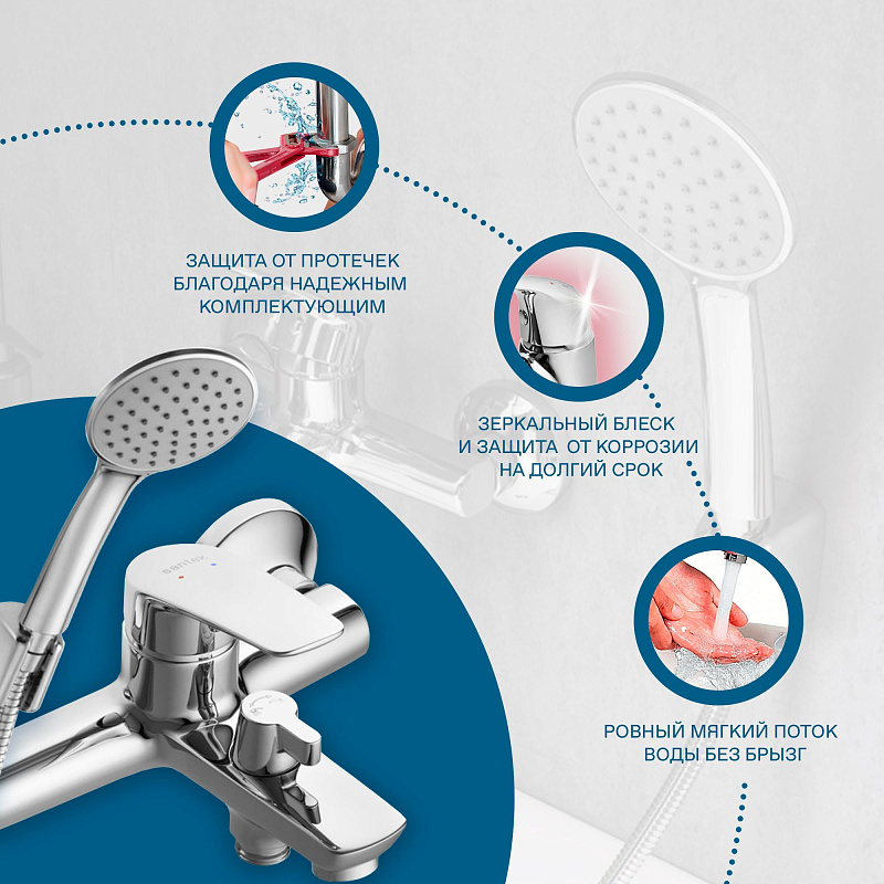 - поворортный керамический переключатель ванна/душ: надежное и удобное переключение режимов потока воды независимо от давления в системе водопровода;