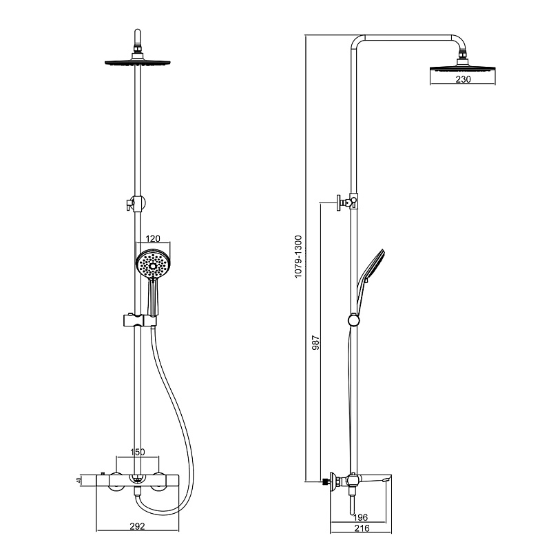 Размер ручного душа,мм