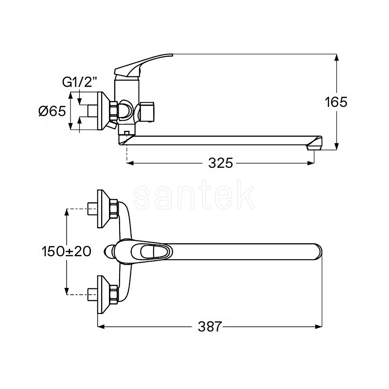—Смесительдля ванны Santek Баус длинный излив, с ручным душем, керамический картридж, хром (WH5A12010C001)