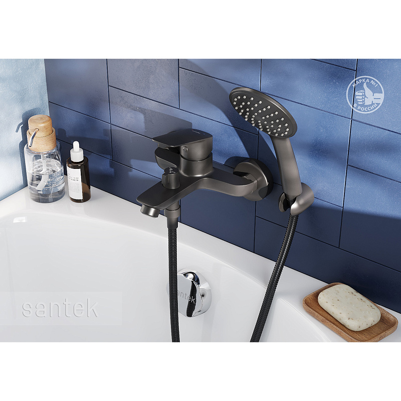 —Смеситель для ванны Santek Таос с ручным душем, керамический картридж, черный матовый (WH5A10009N001)