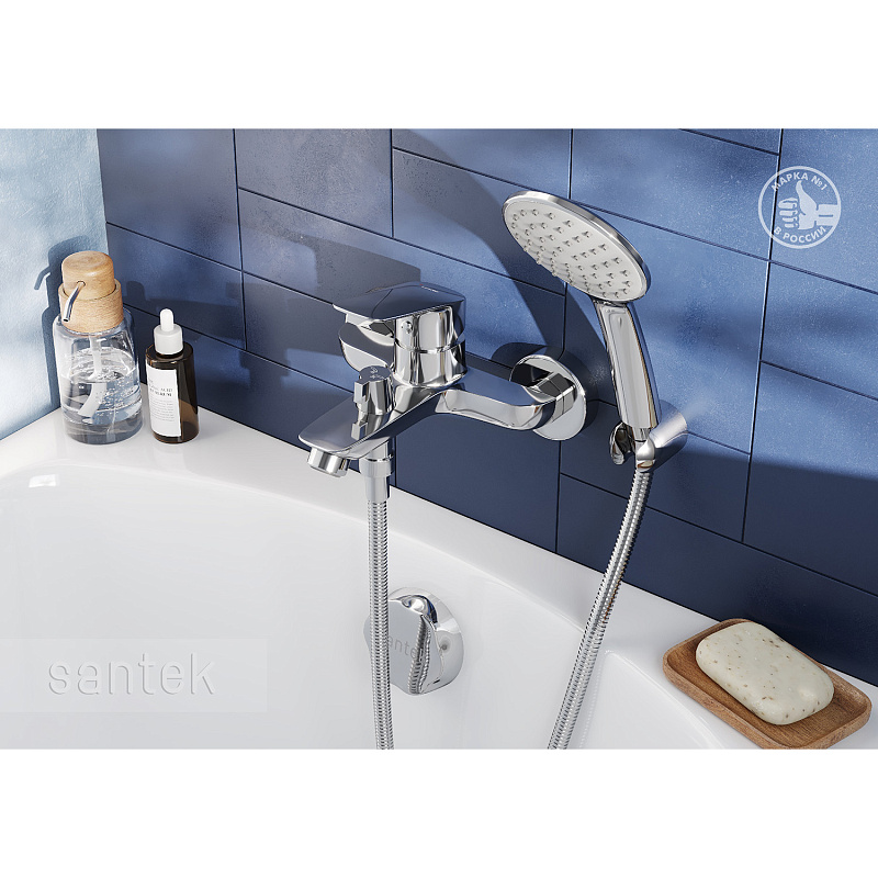 —Смеситель для ванны Santek Таос с ручным душем, керамический картридж, хром (WH5A10009C001)