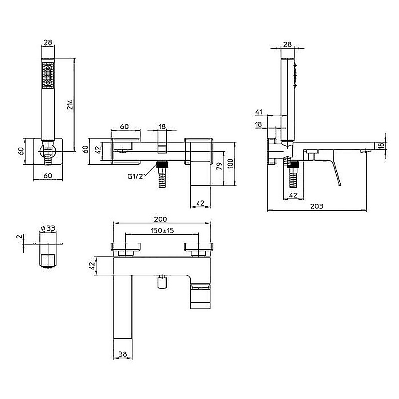 Настенный смеситель для ванны BOSSINI AKI Z00725.030 cо шлангом, держателем и лейкой, цвет Черный матовый: -Наружный настенный однорычажный смеситель для ванны AKI диаметром 188 мм -Размеры: 203 мм х 293 мм -Цвет: хром -Материал: латунь -С двухсторонним переключателем -Длина излива: 188 -Переключение на 2 выхода -Лейка Cube -Фиксированный держатель для душа и шланг из латуни дв. фальцевания -Тип монтажа: на стену -23,9 л/мин -Шланг 1250 мм -Форма: прямоугольная -Современный стиль.
