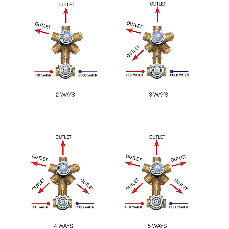 Комплект Bossini CUBE Смеситель для душа, встраиваемый, внешняя часть, хром + Универсальная встроенная часть для механического смесителя на 2-5 источников (Z00004.030+Z00130)