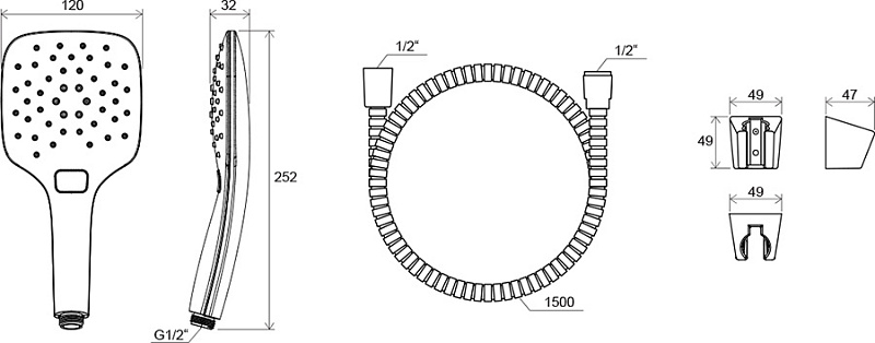 - лейка ручного душа: диаметр 120 мм, ABS пластик, белый , 3 режима - "Jet", "Rain", "Jet + Rain"