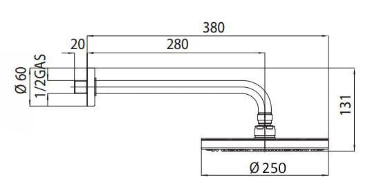 Верхний душ Bossini Elios H19412G.073 настенный с диаметром 250 мм, с вылетом 300 мм. черный матовый