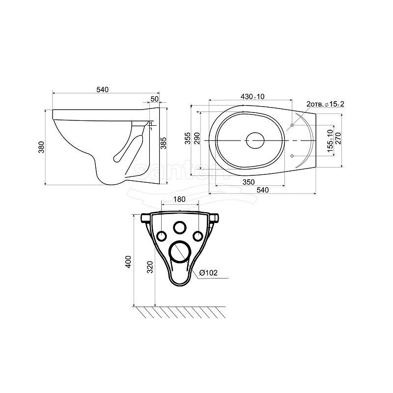—Пэк: Santeri Альфа комфорт подвесной унитаз с сиденьем + инсталляция + панель смыва