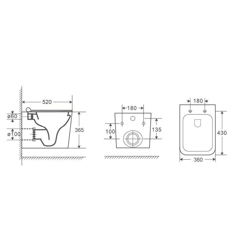 —Унитаз подвесной Azario Boca 360х520х365 безободковый, с быстросъемным сиденьем микролифт (AZ-2002)