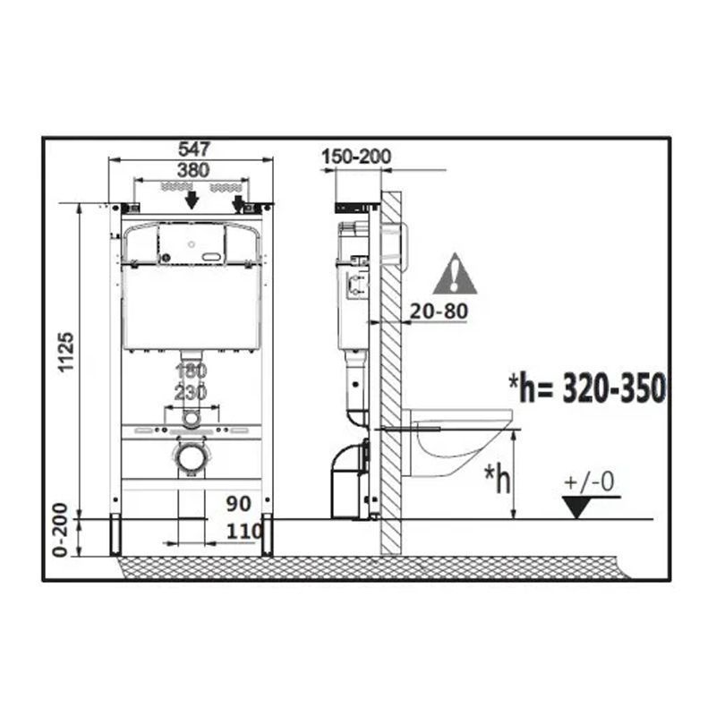Система инсталляции снабжена выдвижными фиксируемыми ножками, изготовленными из гальванизированной стали. Они дают возможность бесступенчато регулировать высоту установки в диапазоне от 0 до 20 сантиметров.
