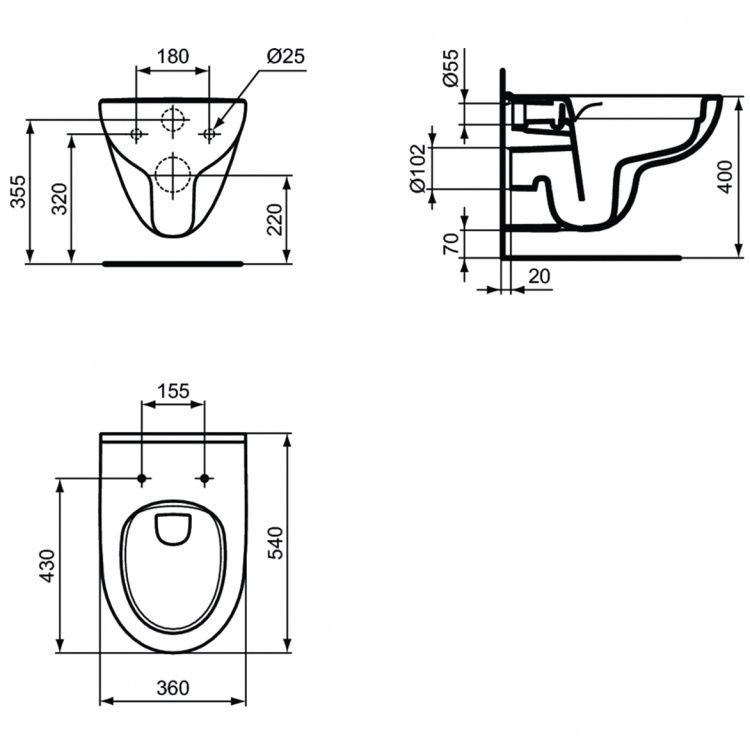 —Унитаз подвесной Ideal Standard i.life A безободковый, технология RimLS+, глубокий смыв. (T471601)
