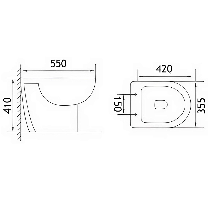 —Унитаз подвесной Loranto Fredo 355х550х410 безободковый, с быстросъемным сиденьем микролифт (CS-WH8005)