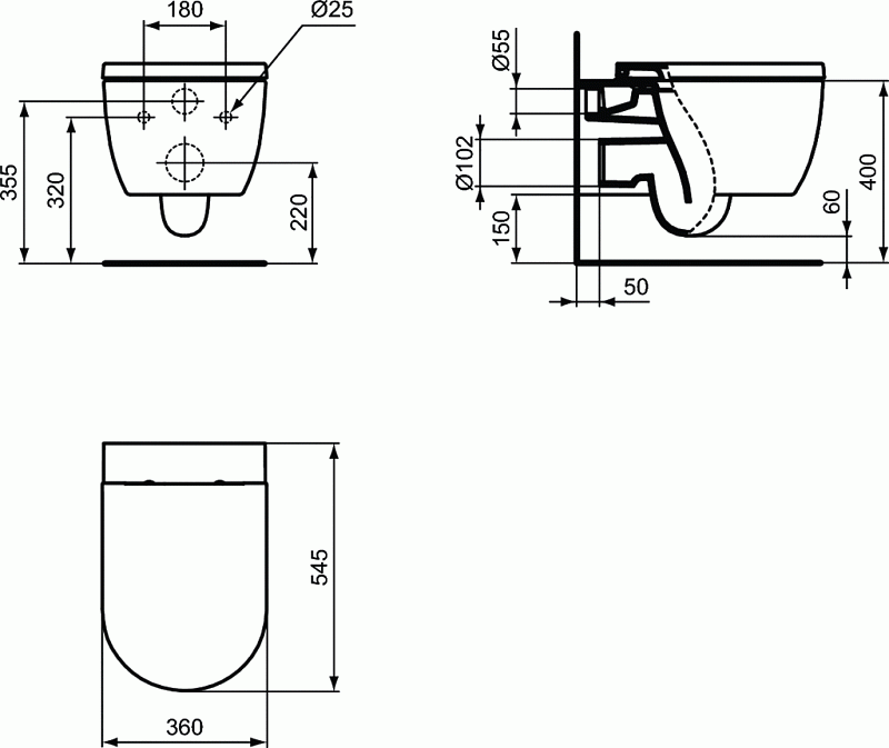 —Унтаз подвесной Ideal Standard BLEND CURVE 360х545х340 белый (T374901)