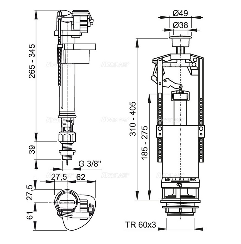 Содержимое упаковки: A16 3/8", A2000, заглушки, шурупы, прокладки