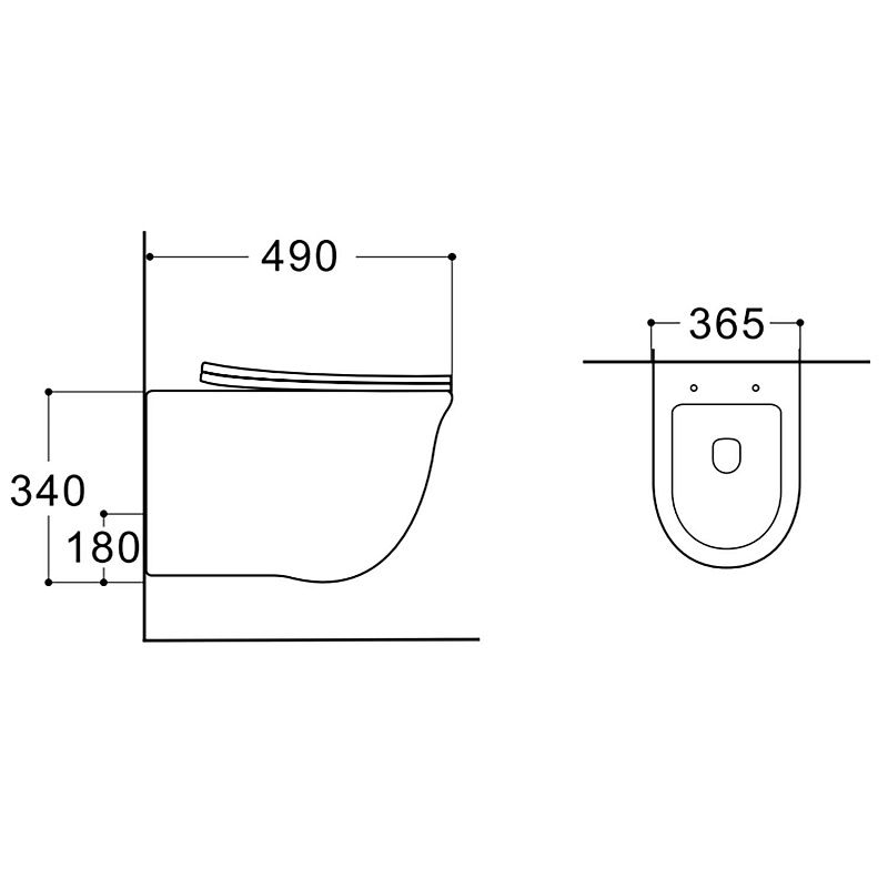 —Унитаз подвесной Azario Листа 490х365х340 безободковый, система смыва "Скрытое Торнадо", с быстросъемным сиденьем "Микролифт" (AZ-1177T)