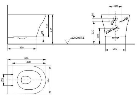 Трехструйный смыв, формирующий водоворот воды и обеспечивающий 100% омывание чаши. Потоки воды не сталкиваются и создают тихий смыв с минимальным количеством брызг.