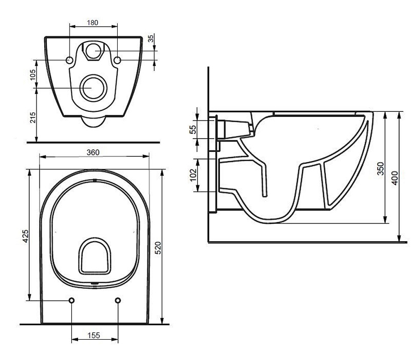 —Унитаз подвесной Seramiksan Hill 360х520х350 безободковый, с тонким сиденьем микролифт, белый (A031161H+A030011)