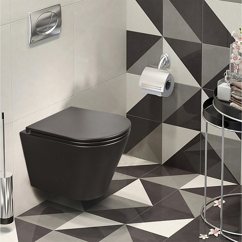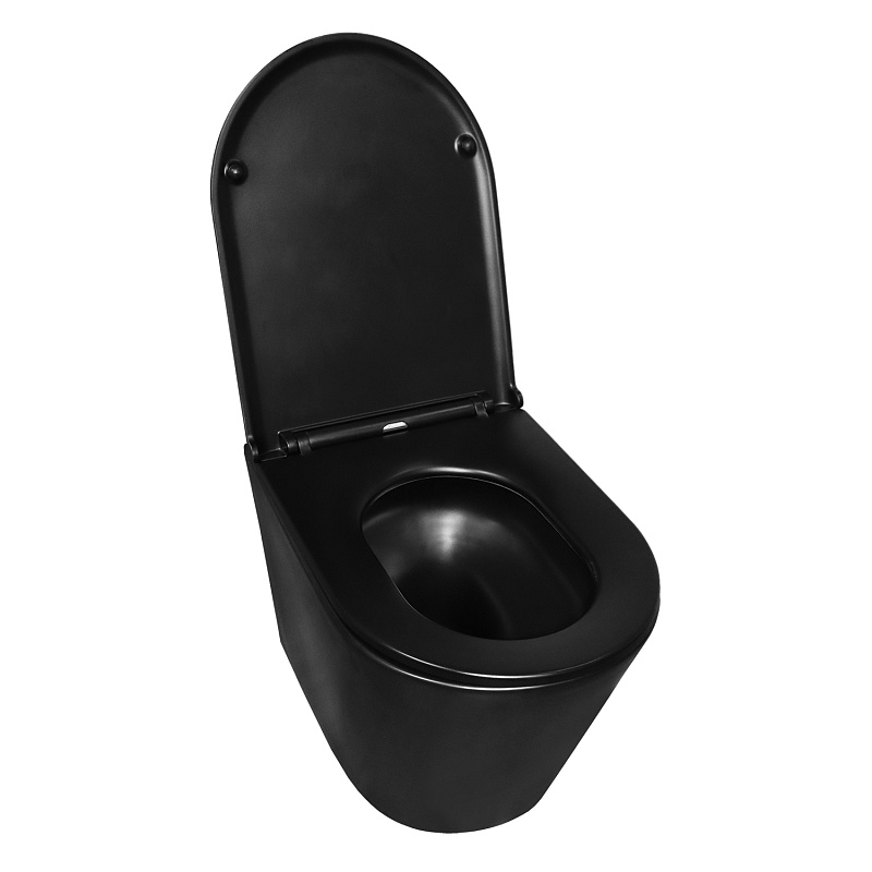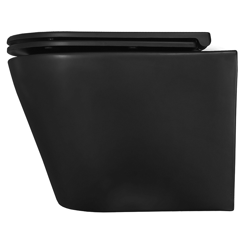 —Унитаз подвесной Azario Teramo 355х515х365 смыв "Скрытое торнадо", безободковый, с быстросъемным сиденьем микролифт, черный матовый (AZ-0053-UQ3-MB)