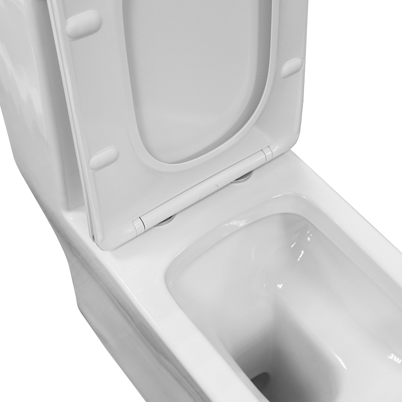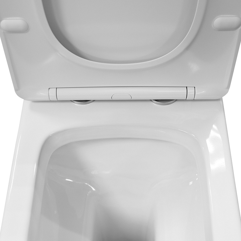 —Унитаз напольный Azario Vero безободковый моноблок Горизонтальный слив, сиденье дюропласт микролифт 675x370x785 (AZ-8608)