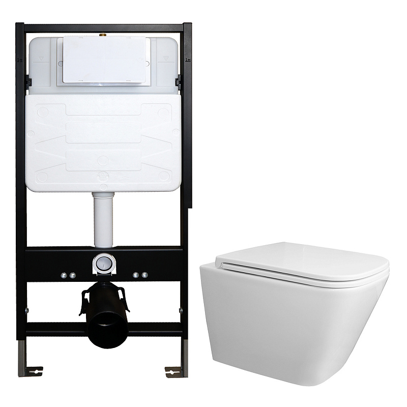—Сет: Инсталляция для подвесного унитаза AZARIO FORTE 3/6л.+ подвесной унитаз Azario Teramo, безободковый, смыв "Скрытое Торнадо", сиденье микролифт (AZ-100-100F+AZ-0052-UQ3)