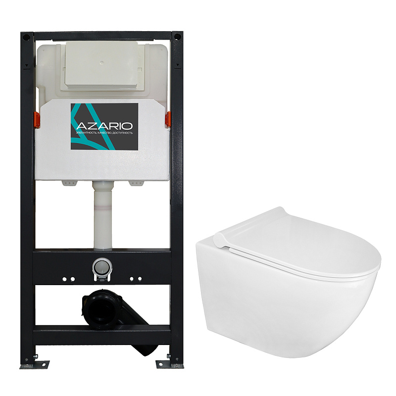 —Сет AZARIO NEW Инсталляция для подвесного унитаза 3/6л+ Подвесной безободковый унитаз Azario GENO с сиденьем микролифт (AZ-501A+AZ-2196)
