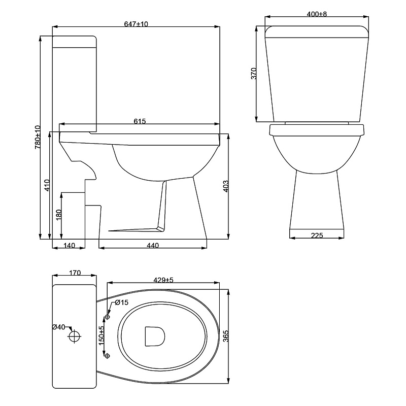 —Унитаз-компакт Creo Ceramique PROJECT с микролифтом 400х647х780 прямой выпуск, сливная арматура в комплекте
