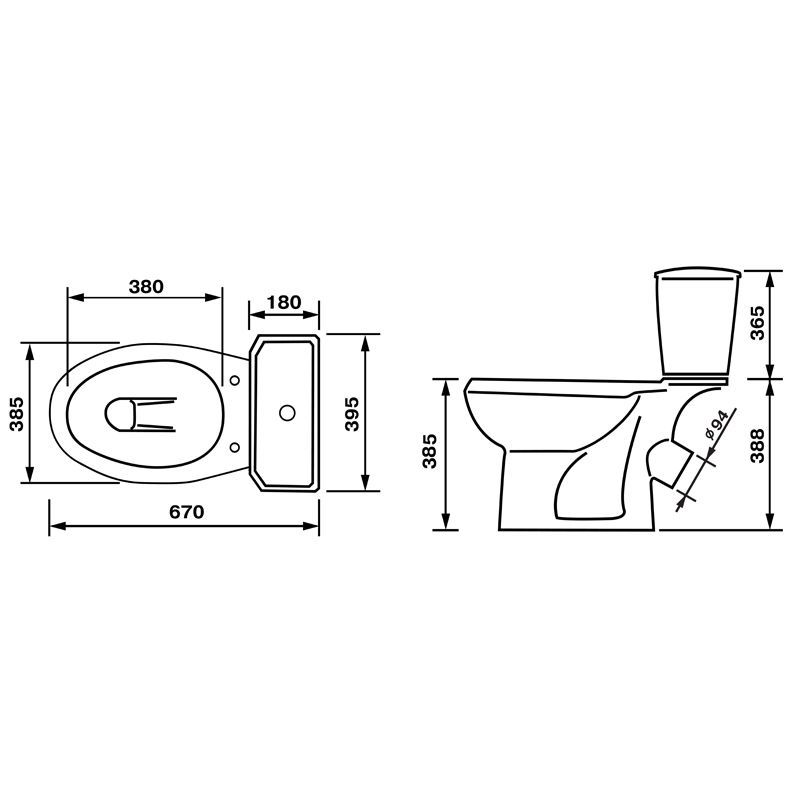 —Унитаз-компакт Элисса Стандарт боковой подвод, с сиденьем, белый (43301130302)