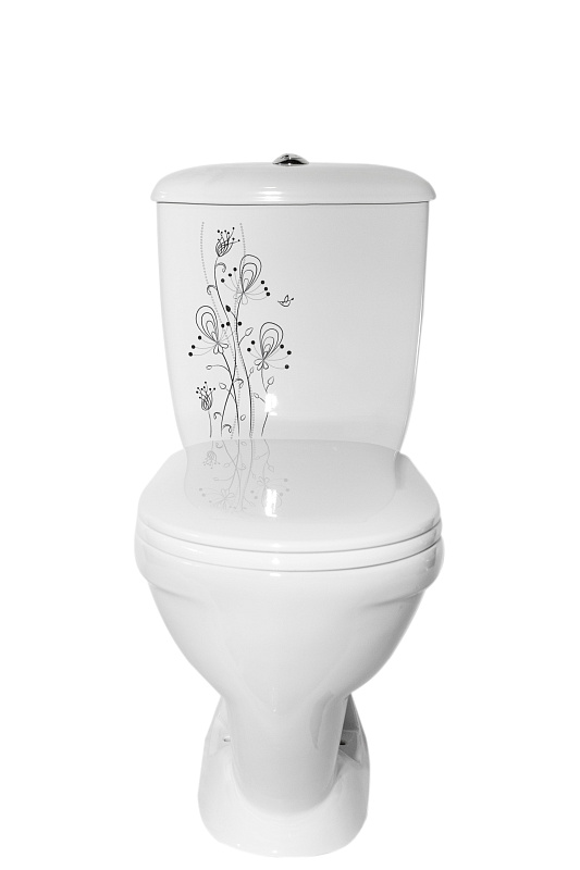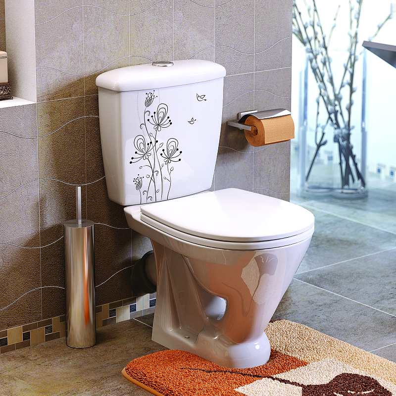 Унитаз-компакт Радуга тарельчатый декор Цветы Стандарт, сиденье полипропилен