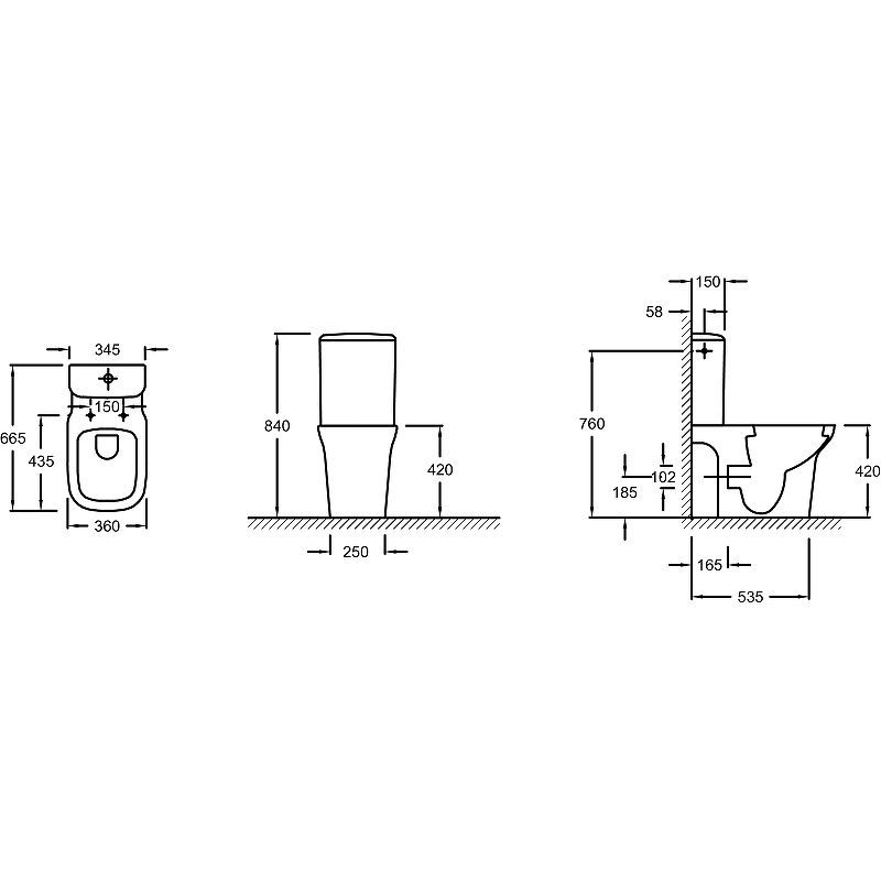 Габариты чаши унитаза (ШхВхД): 360х420х665 мм.