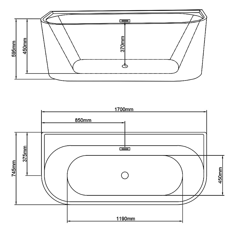 Ванна акриловая Loranto 1700х750х610 пристенная, в комплекте с сифоном и опорными ножками (CS-12-170)