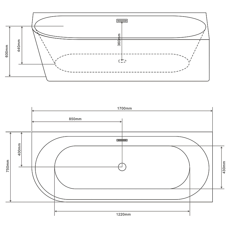•    Простор и комфорт: Размеры 1700х750х600 мм обеспечивают достаточно места для полного погружения и расслабления. Глубина 600 мм позволяет насладиться полноценной ванной процедурой.