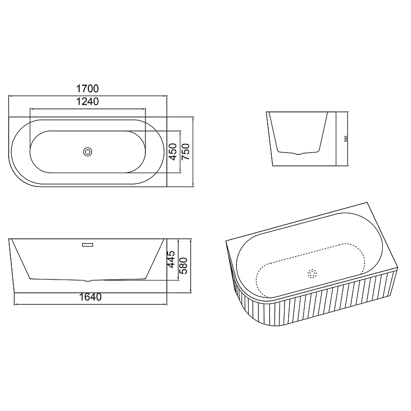 Рифленая внешняя поверхность: Уникальная рифленая текстура внешней поверхности не только придает ванне изысканный и современный вид, но и обеспечивает дополнительное сцепление, предотвращая скольжение и повышая безопасность.