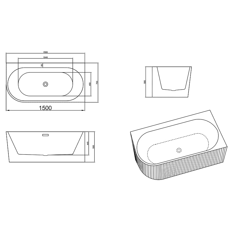 Рифленая внешняя поверхность: Уникальная рифленая текстура внешней поверхности не только придает ванне изысканный и современный вид, но и обеспечивает дополнительное сцепление, предотвращая скольжение и повышая безопасность.