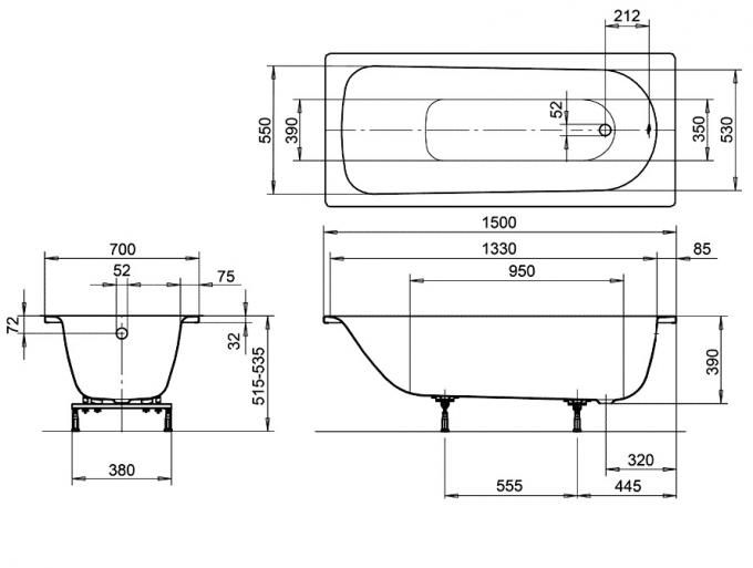 Ванна стальная Kaldewei Eurowa Verp. 150х70х39, alpine white, без ножек